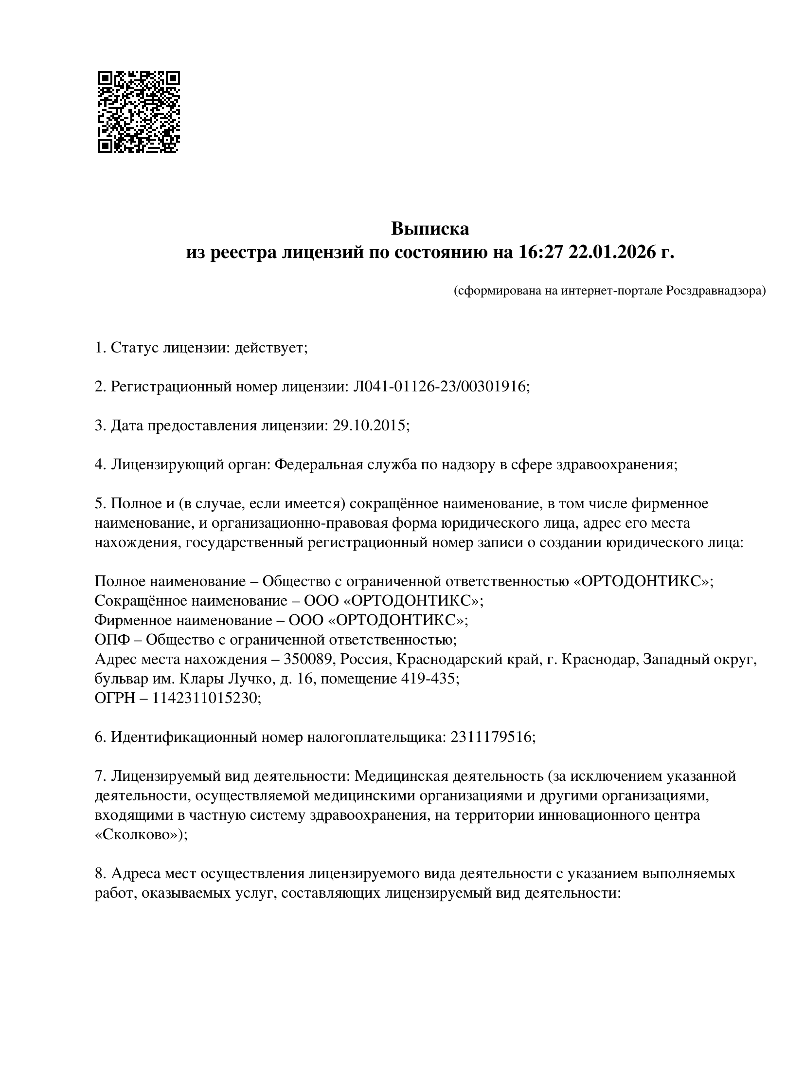 Официальные документы клиники