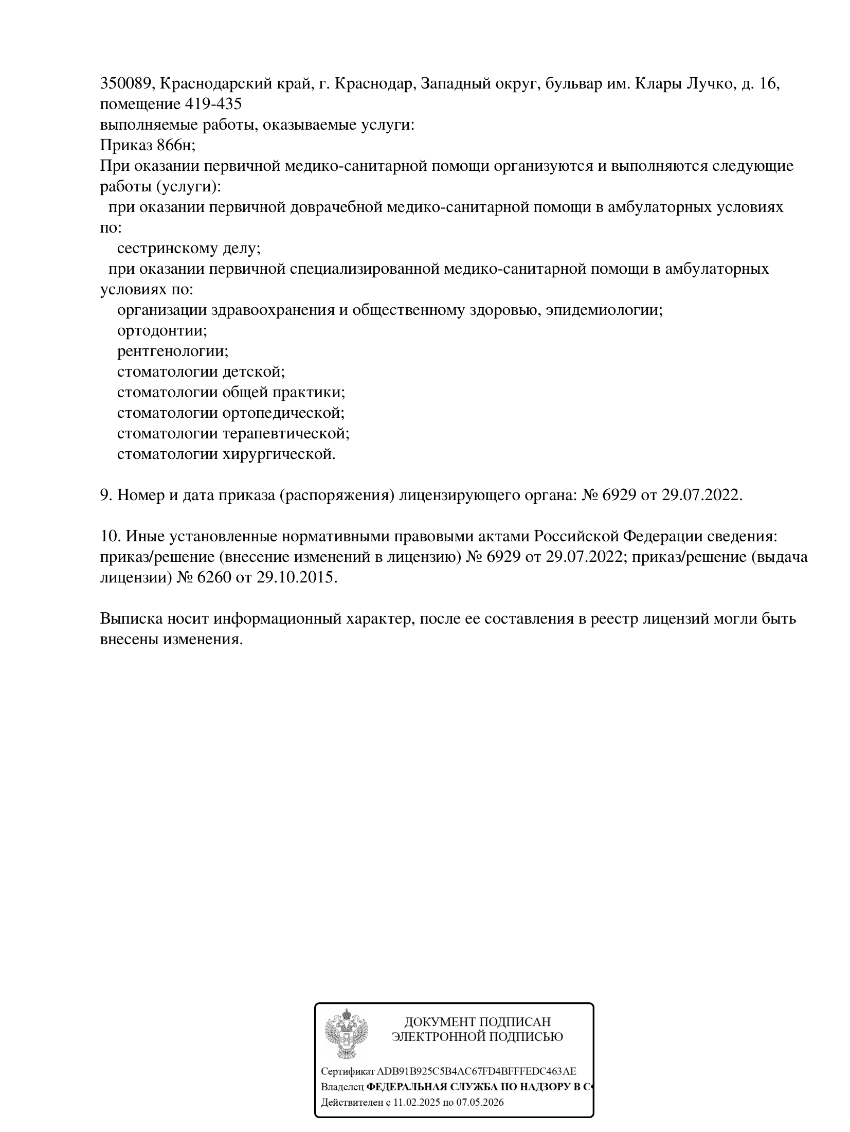 Информация о медицинской организации